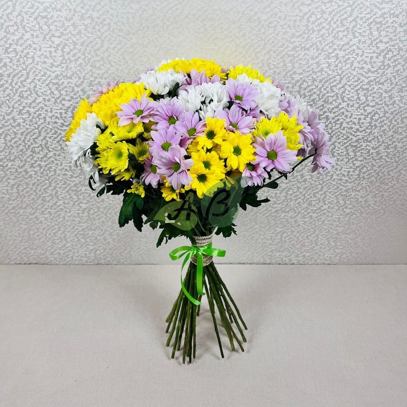 - Хризантема - 25 веток, цвет - разноцветный, длина стебля - 50-60 см;